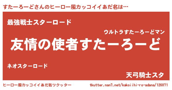| 男性向けラノベタイトル風あだ名 | 『スターロードスレイヤー』 |