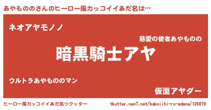 | 女子向けラノベタイトル風あだ名 | 『あやもののは平凡を望む』 |