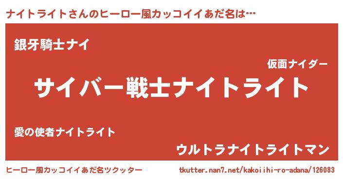 | 男性向けラノベタイトル風あだ名 | 『Re:ナイトライトから始める異世界生活』 |