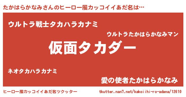 | 男性向けラノベタイトル風あだ名 | 『魔弾の王とたかはらかなみ』 |