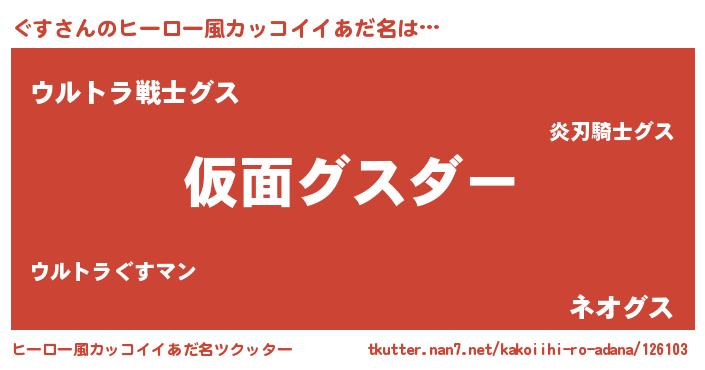 | 男性向けラノベタイトル風あだ名 | 『この素晴らしい世界にぐすを!』 |