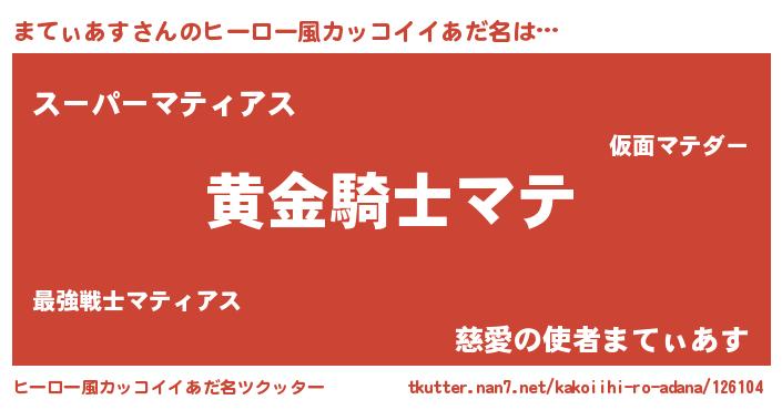| 胡散臭い通販商品みたいなあだ名 | 『信頼と実績のネックレス…その名も「まてぃあす」』 |