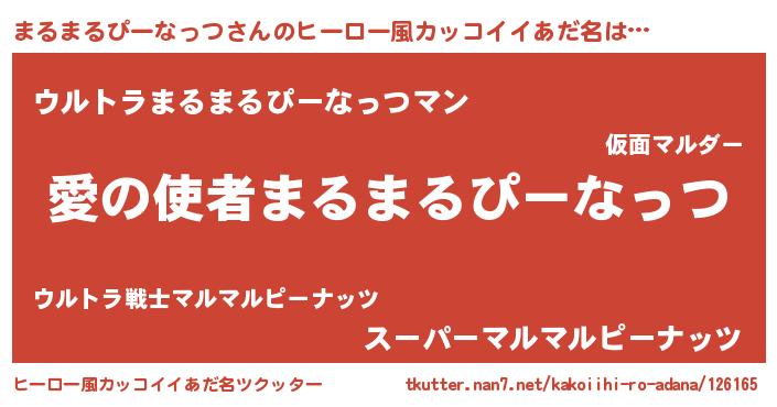 | 男性向けラノベタイトル風あだ名 | 『おまえをオタクにしてやるから、俺をまるまるぴーなっつにしてくれ! 』 |