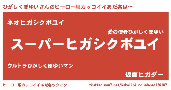 | 恥ずかしいあだ名 | 『プリティーひがしくぼゆい』『ひがちん』 |
