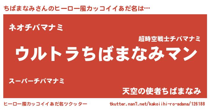 | 男性向けラノベタイトル風あだ名 | 『やはりちばまなみの青春ラブコメはまちがっている 』 |