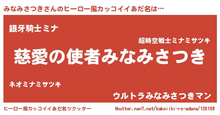 | 女子向けラノベタイトル風あだ名 | 『死神みなみさつきの再婚』 |