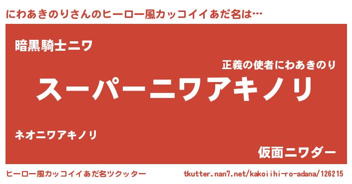 | 男性向けラノベタイトル風あだ名 | 『ニワアキノリアートオンライン』 |