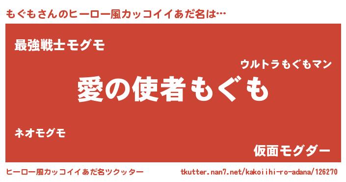 | 男性向けラノベタイトル風あだ名 | 『転生したらもぐもだった件』 |