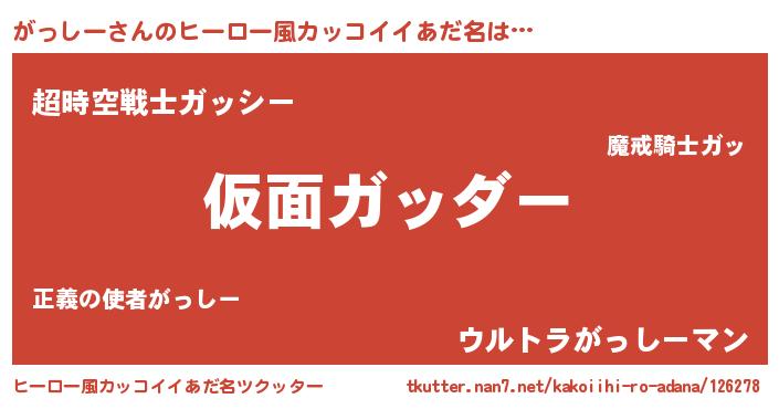 | 男性向けラノベタイトル風あだ名 | 『魔弾の王とがっしー』 |