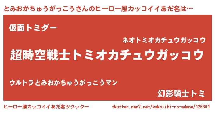 | 男性向けラノベタイトル風あだ名 | 『魔法科高校のとみおかちゅうがっこう』 |