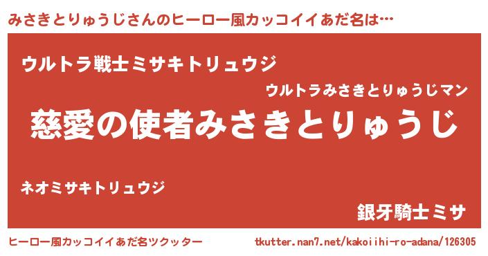 | 男性向けラノベタイトル風あだ名 | 『ノーゲーム・ノーミサキトリュウジ』 |