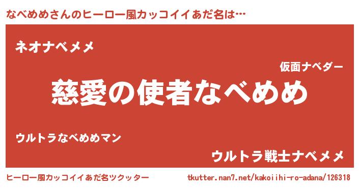 | 欧米人風あだ名 | 『トリンドルなべめめ』 |