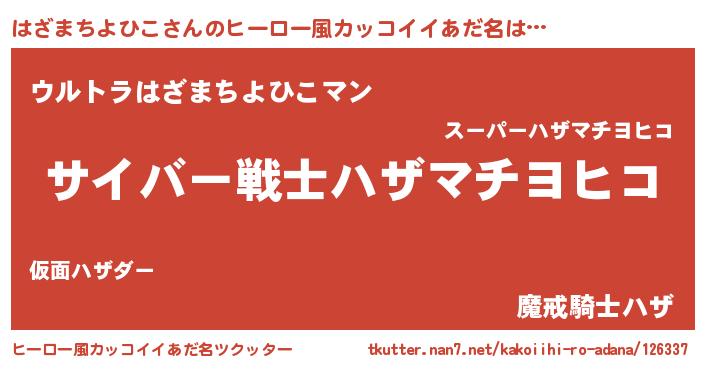 | 男性向けラノベタイトル風あだ名 | 『Re:はざまちよひこから始める異世界生活』 |