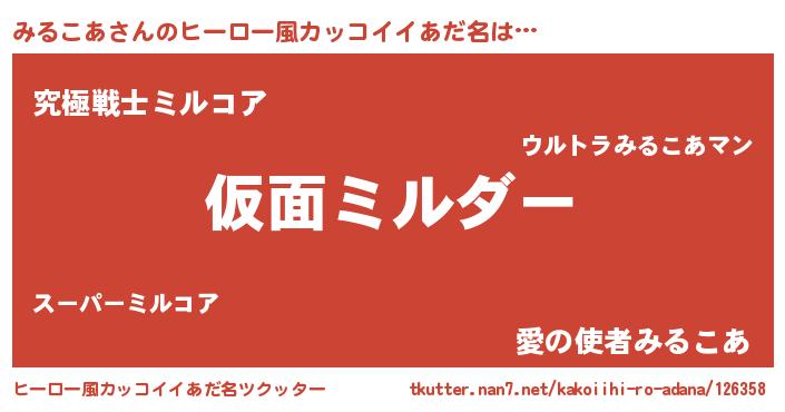 | 意味不明あだ名 | 『住所不定無職みるこあ(40歳)』 |