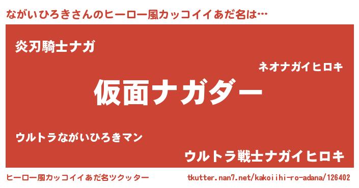 | ポケモン風あだ名 | 『ナーガイ』『ヒナガイヒロキ』 |