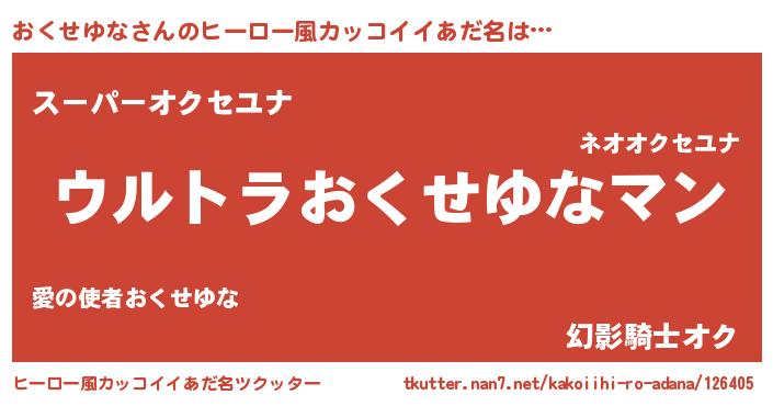 | 欧米人風あだ名 | 『おくせゆな・ステッグマイヤー』 |