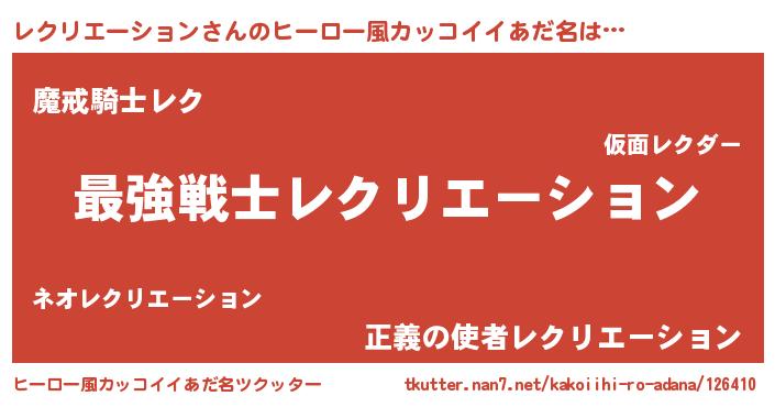 | 男性向けラノベタイトル風あだ名 | 『Re:レクリエーションから始める異世界生活』 |