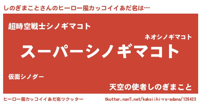 | 男性向けラノベタイトル風あだ名 | 『シノギマコトアートオンライン』 |