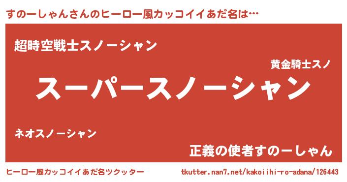 | 男性向けラノベタイトル風あだ名 | 『すのーしゃんの憂鬱』 |