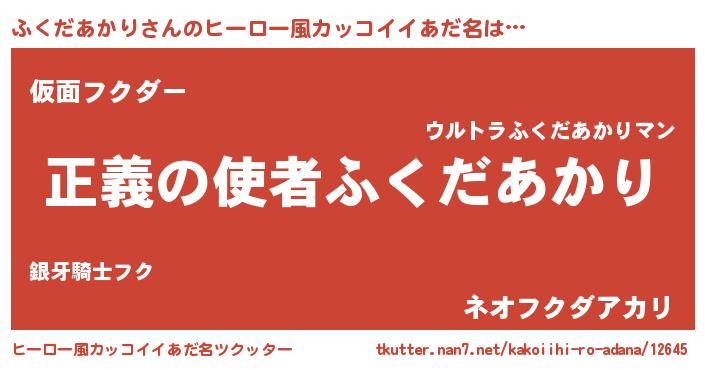 | 女子向けラノベタイトル風あだ名 | 『ふくだあかり夫妻のなれそめ』 |