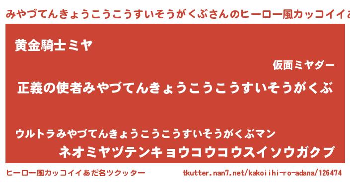 | 肩書あだ名 | 『みやづてんきょうこうこうすいそうがくぶ学科長』 |