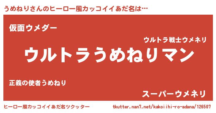 | ファンタジー風あだ名 | 『エターナルウメネリー』『ウメフェル』 |