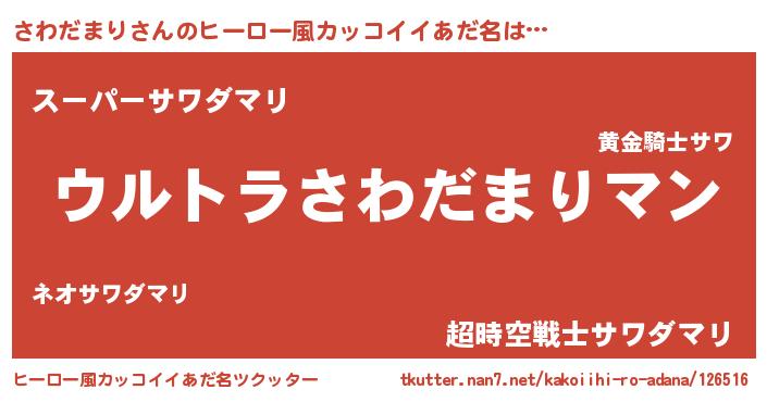 | 男性向けラノベタイトル風あだ名 | 『うちのさわだまりが世界を掌握している!』 |