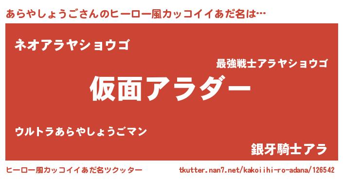| 男性向けラノベタイトル風あだ名 | 『この素晴らしい世界にあらやしょうごを!』 |