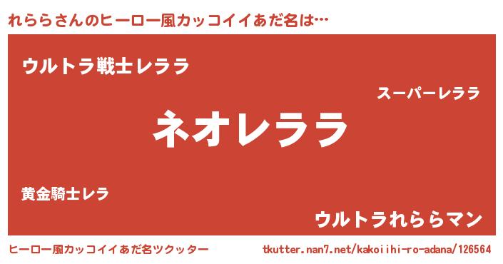 | ヘコむあだ名 | 『れらら(遠い目)』『豆乳』『れらお』 |