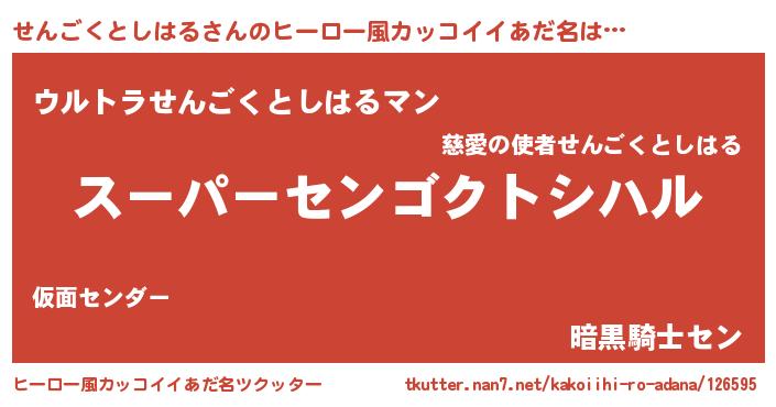 | 男性向けラノベタイトル風あだ名 | 『せんごくとしはるに滅ぼされるだけの簡単なお仕事です』 |