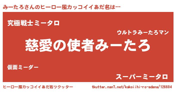 | 女子向けラノベタイトル風あだ名 | 『死神みーたろの再婚』『闇のみーたろ』 |