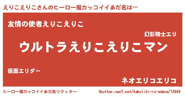 | 女子向けラノベタイトル風あだ名 | 『えりこえりこの雑貨屋さん』 |