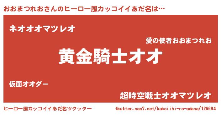 | 女子向けラノベタイトル風あだ名 | 『おおまつれおは平凡を望む』 |
