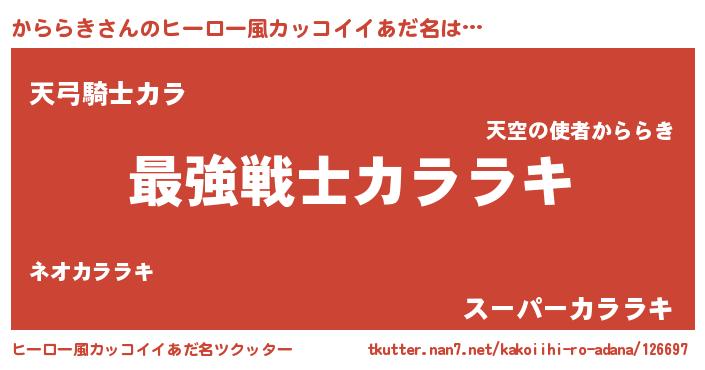 | 男性向けラノベタイトル風あだ名 | 『Re:かららきから始める異世界生活』 |