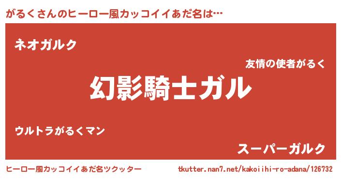 | ポケモン風あだ名 | 『ヒガルク』『ガルゴンZ』『ゼニガル』 |