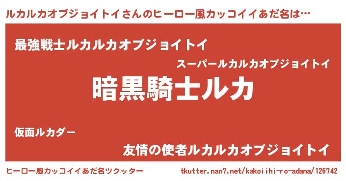 | 意味不明あだ名 | 『とにかく怪しいルカルカオブジョイトイ』 |