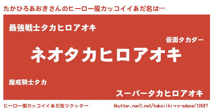 | ヘコむあだ名 | 『たかひろあおき(苦笑)』『たかっふぃ~』 |