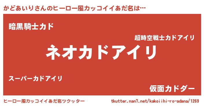 | ヘコむあだ名 | 『かどあいり(苦笑)』『かどを』 |