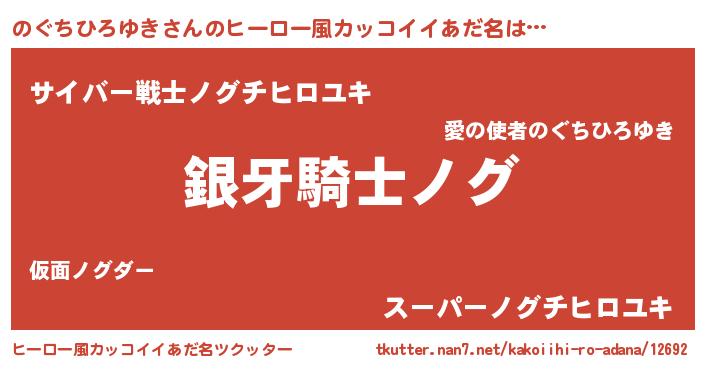 | 男性向けラノベタイトル風あだ名 | 『のぐちひろゆきの嫁は女の子じゃないと思った?』 |