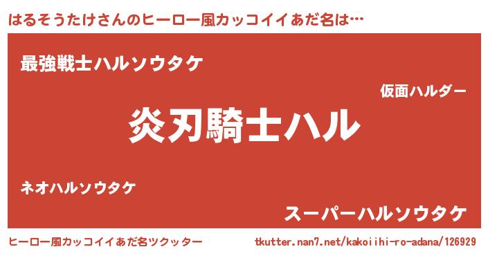| 男性向けラノベタイトル風あだ名 | 『はるそうたけ~年齢イコール彼女いない歴の魔法使い~』 |