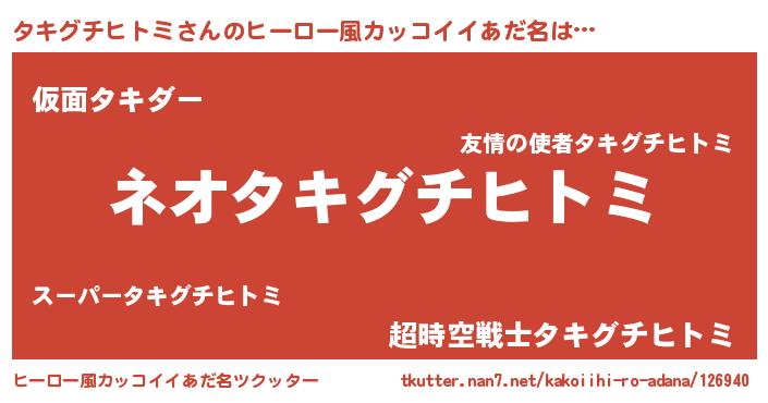 | 男性向けラノベタイトル風あだ名 | 『タキグチヒトミに滅ぼされるだけの簡単なお仕事です』 |