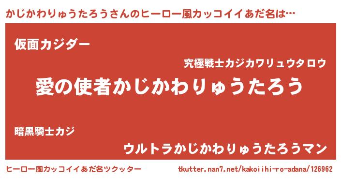 | 男性向けラノベタイトル風あだ名 | 『かじかわりゅうたろうに滅ぼされるだけの簡単なお仕事です』 |