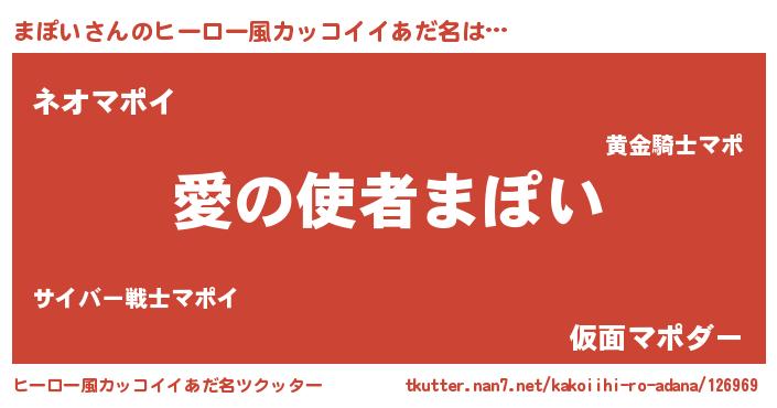 | 女子向けラノベタイトル風あだ名 | 『まぽい恋絵巻』『まぽいの玉の輿計画!』 |