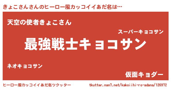 | 男性向けラノベタイトル風あだ名 | 『Re:きょこさんから始める異世界生活』 |