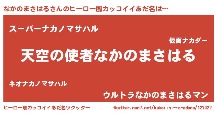 | 男性向けラノベタイトル風あだ名 | 『ノーゲーム・ノーナカノマサハル』 |