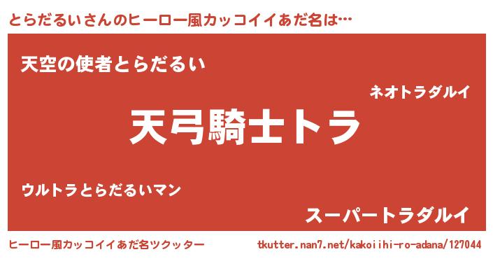 | 意味不明あだ名 | 『とにかく怪しいとらだるい』 |