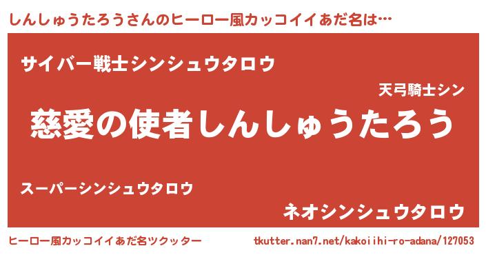 | 男性向けラノベタイトル風あだ名 | 『しんしゅうたろう~年齢イコール彼女いない歴の魔法使い~』 |