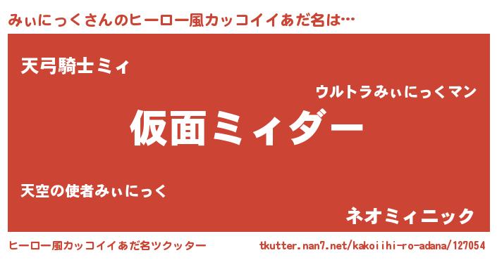 | 意味不明あだ名 | 『住所不定無職みぃにっく(91歳)』 |