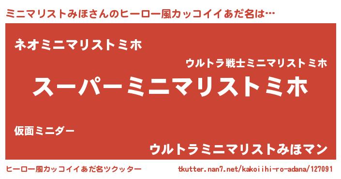 | 胡散臭い通販商品みたいなあだ名 | 『億万長者になれるブレスレット…その名も「ミニマリストみほ」』 |