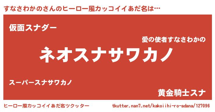 | 男性向けラノベタイトル風あだ名 | 『すなさわかのという概念が存在しない退屈な世界 』 |